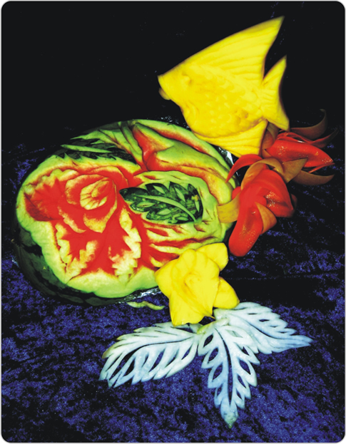 Obst und Gemüse zu Kunstwerken gestaltet, bereichern